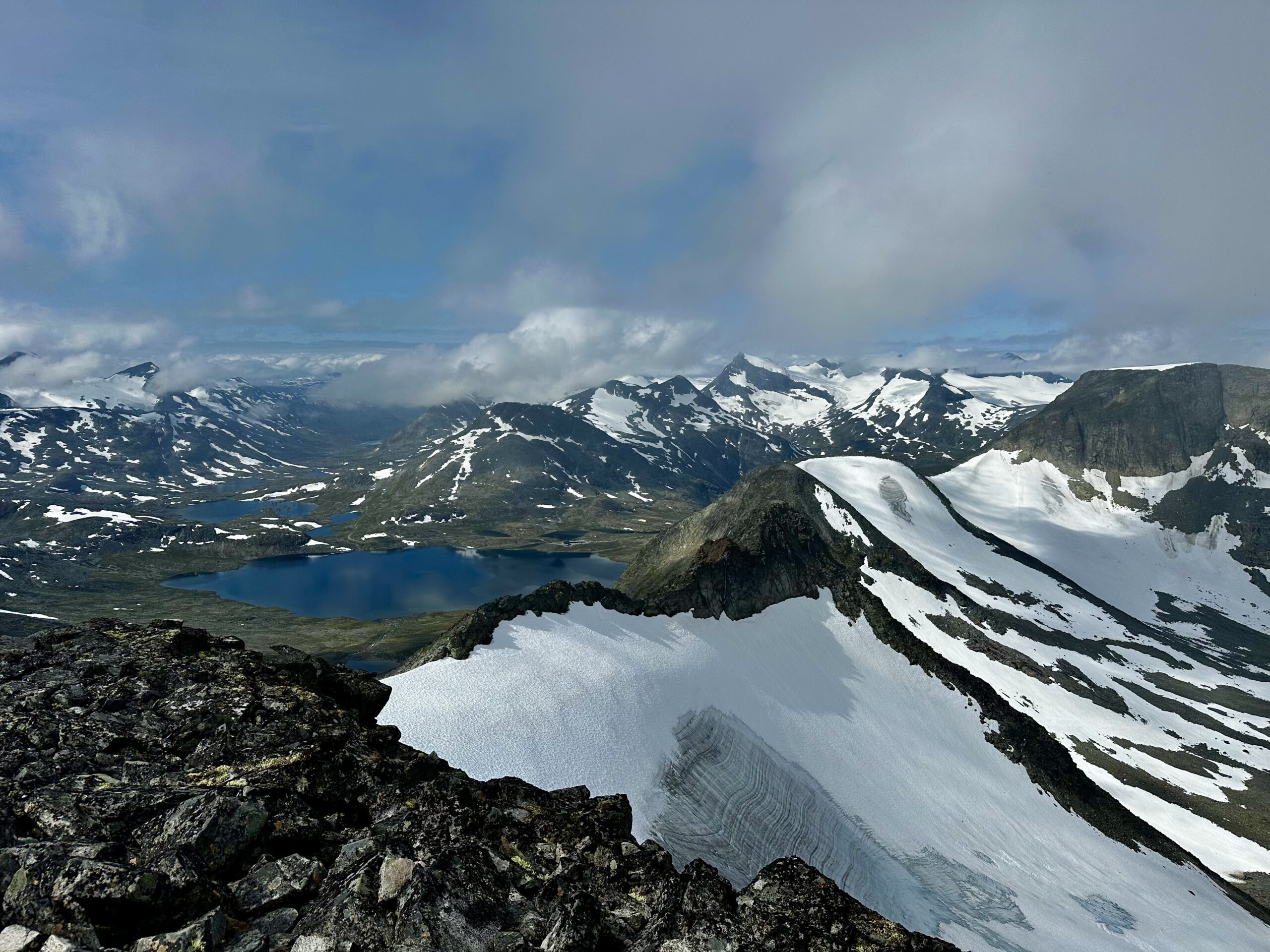 Utsikten från Tverrbytthornet med bland annat Storebjørn i bakgrunden