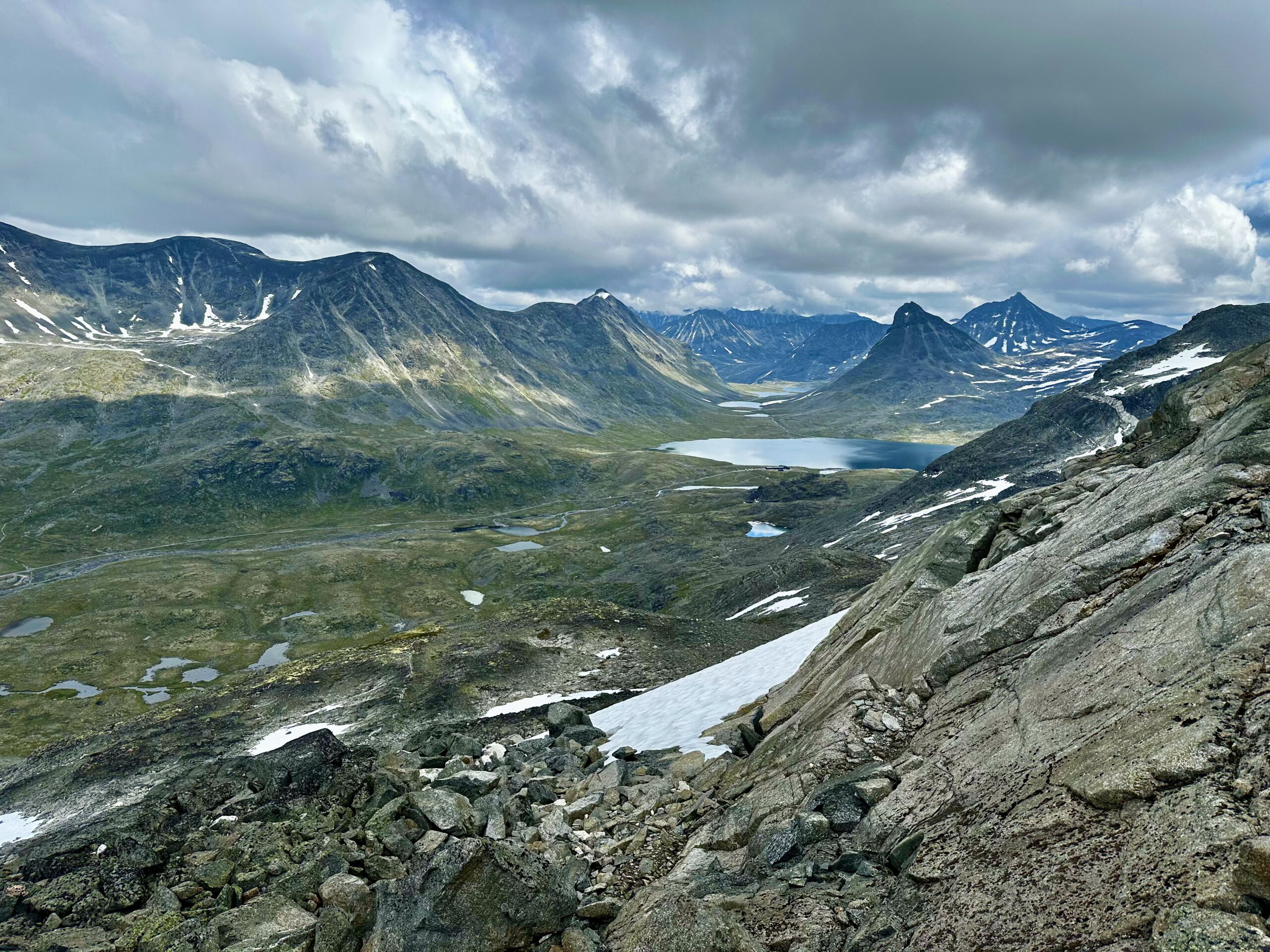Leirvassbu och övre delen av Leirdalen. Sedd från norra kammen på Stetinden