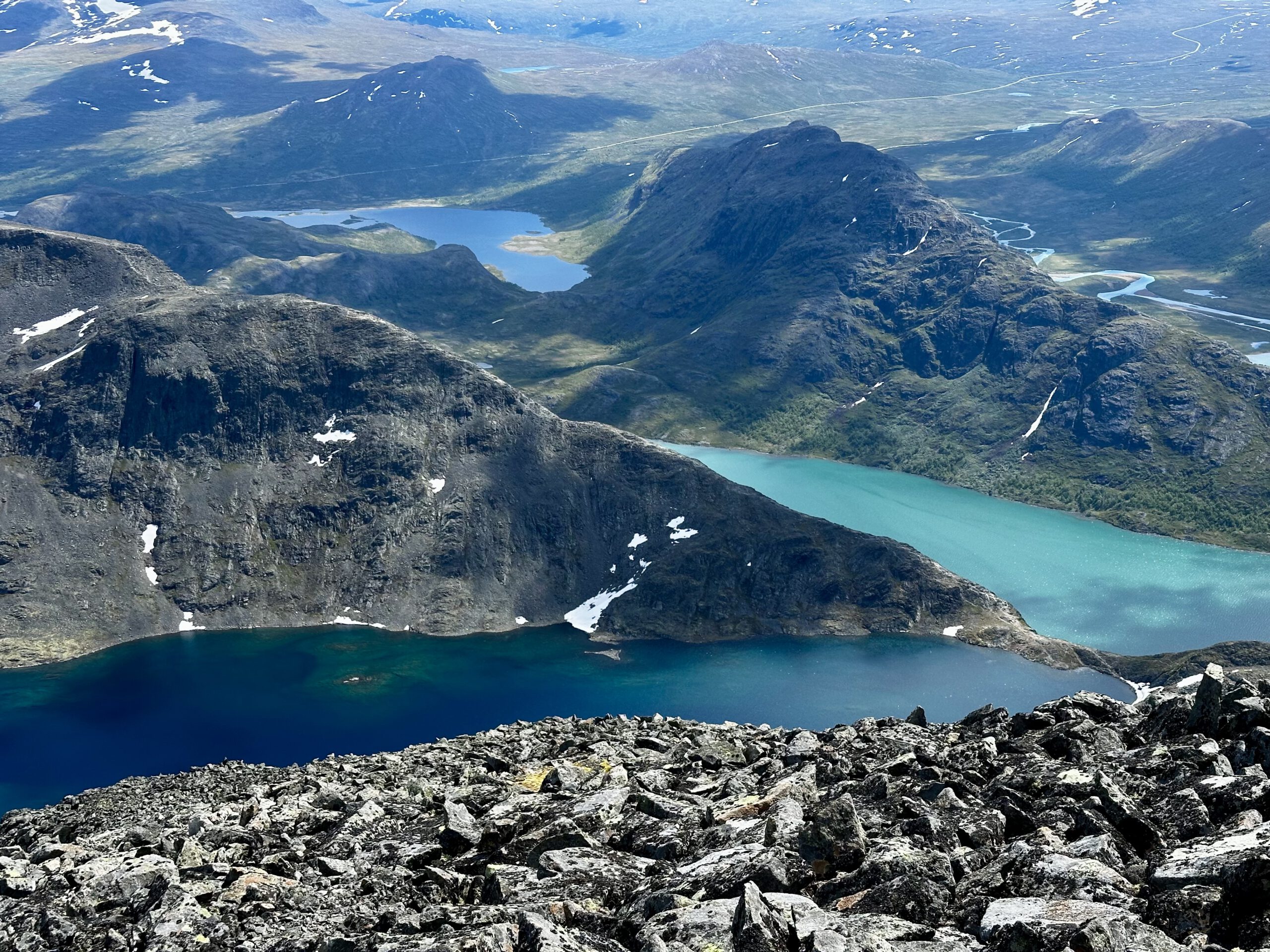 Utsikten ner över Besseggen sedd från toppen av Besshøe