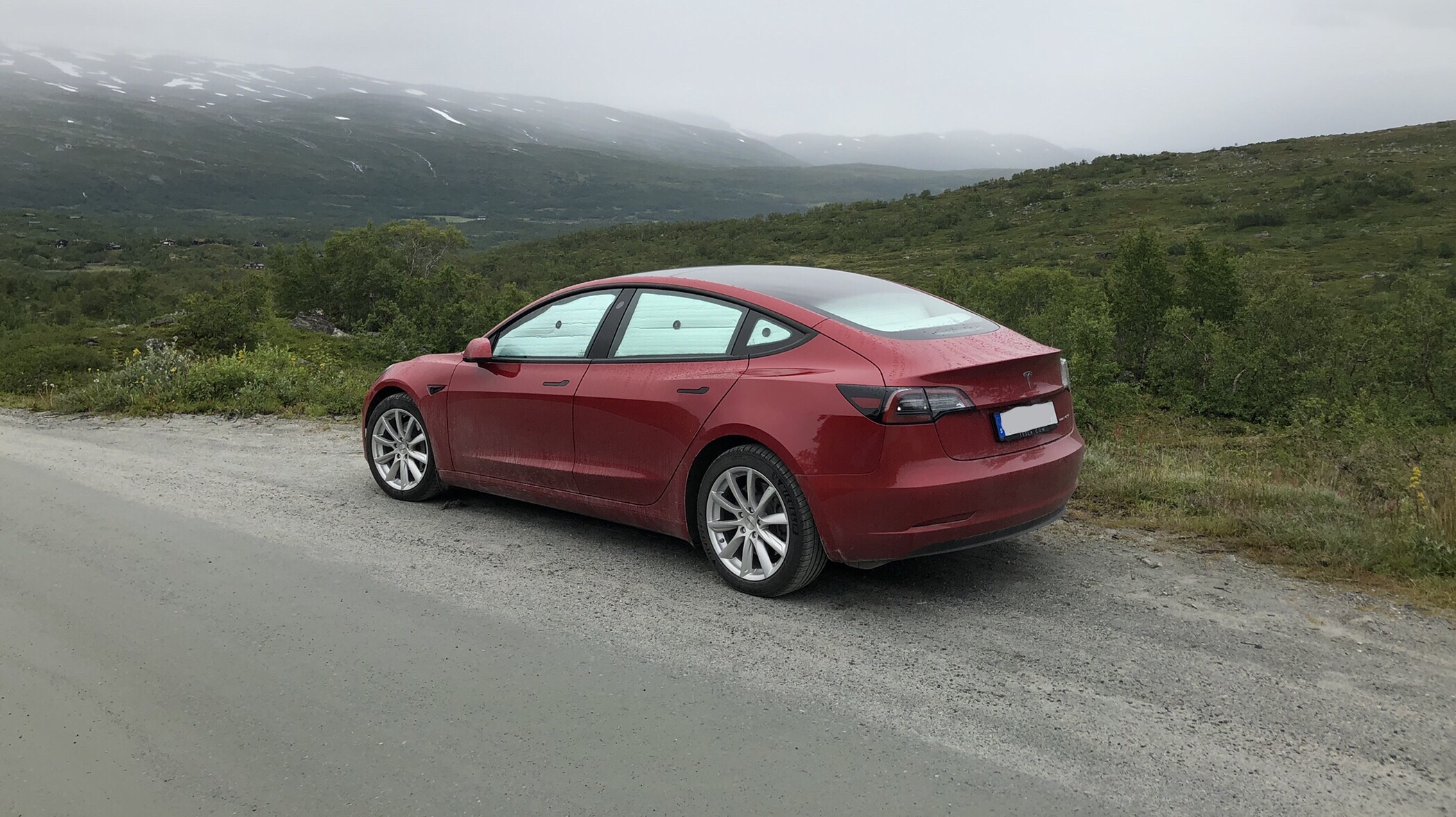 Teslan förberedd för en övernattning på fjället